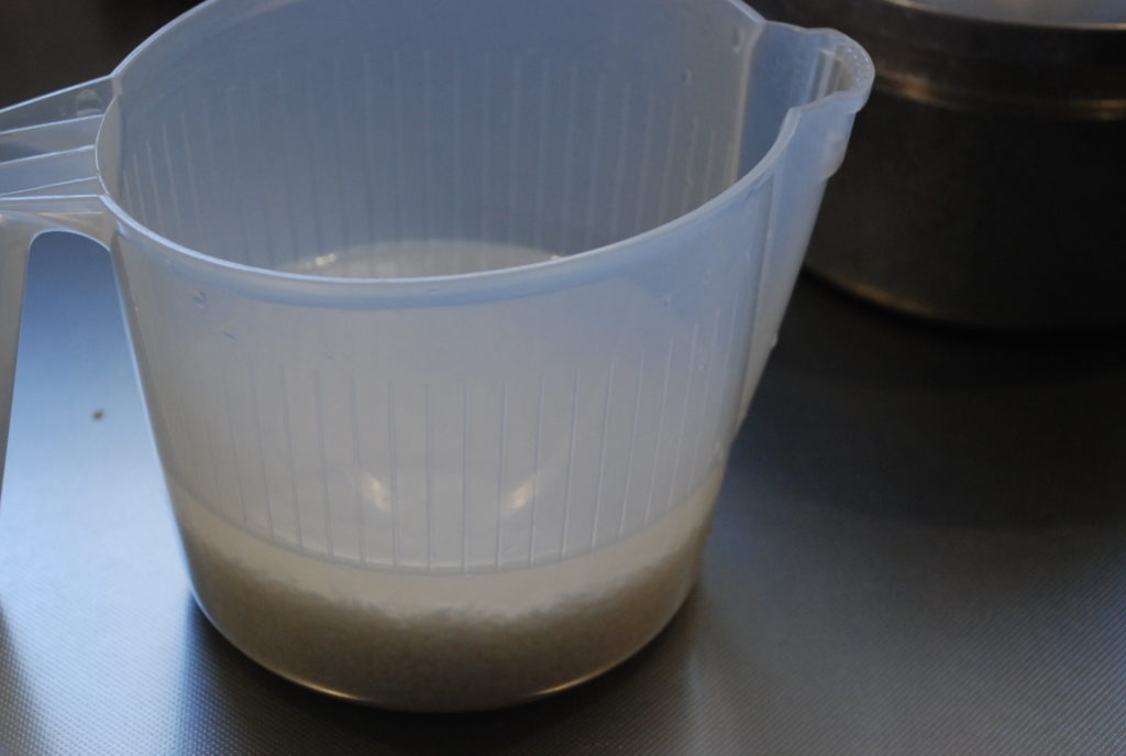 Tout d’abord, plonger du riz dans l’eau jusqu’à du riz devenir plus blanc. Ça prend environ 20 minutes en été.